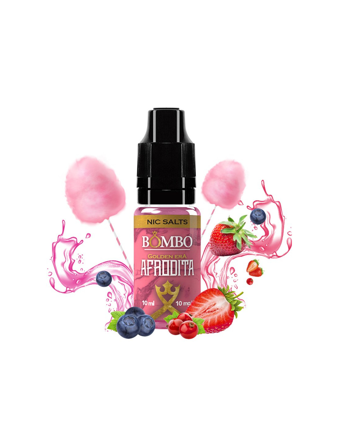 El líquido Afrodita de Golden Era Nic Salts by Bombo una explosión frutal en la que predomina la fresa envuelta en algodón de azúcar, sutilmente rociada con sirope de grosella y aromas paradisíacos secretos.