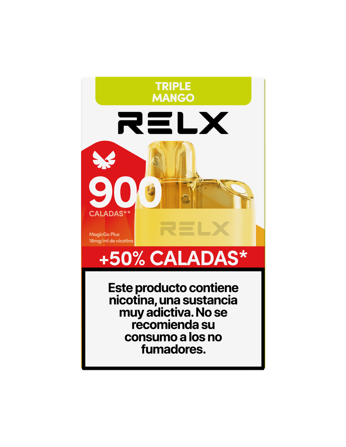 Pod Desechable Triple Mango - MagicGo Plus 900 18mg by Relx con sabor a una deliciosa mezcla de tres tipos de mangos.